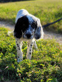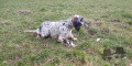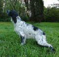 Meilleur de race. 60 cm. DCC. Exc modèle, très typé setter. Exc tête et sortie d'encolure. Exc épaules, cuisse et poitrine. Se présente très bien. Trotte et marche bien.